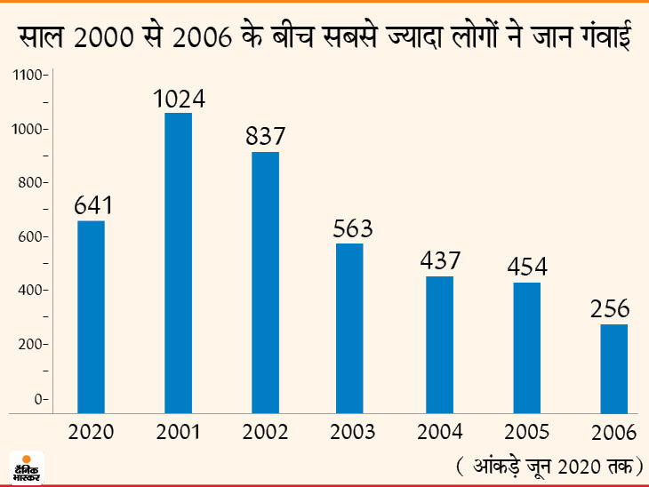 - पिछले साल 42 कश्मीरियों ने अपनी जान गंवाई थी, 2018 में 86 ने, जबकि सबसे ज्यादा 1024 आम नागरिकों की मौतें साल 2001 में हुई थीं