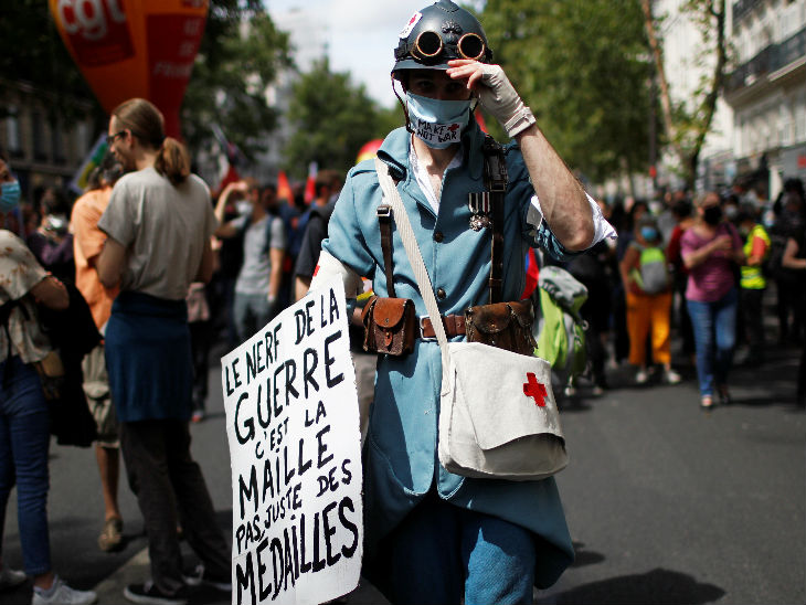 फ्रांस में सभी पब्लिक प्लेस पर अगले कुछ हफ्तों तक मास्क लगाना जरूरी कर दिया गया है। राष्ट्रपति इमैनुअल मैक्रों ने मंगलवार को इसकी घोषणा की। फ्रांस सरकार ने स्वास्थ्यकर्मियों के वेतन में कुल 8 बिलियन यूरो (करीब 687 अरब रु.) की बढ़ोतरी की है। इससे एक स्वास्थ्यकर्मी के वेतन में हर महीने औसतन 183 यूरो( करीब 15 हजार रु.) का इजाफा होगा। यहां स्वास्थ्य कर्मचारी संक्रमण फैलने के बाद से ही वेतन बढ़ाने की मांग कर रहे थे।
