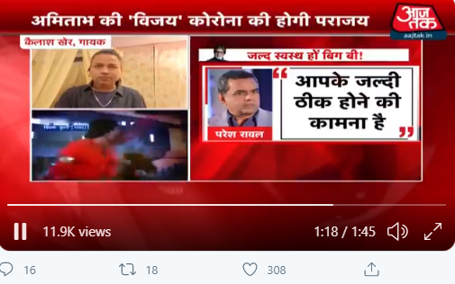 - विवादित लाइन। जिसका स्क्रीनशॉट वायरल कर लोग चैनल पर निशाना साध रहे हैं। अमिताभ बच्चन को कोरोना होने से जुड़ी हर खबर का वीडियो देखने पर भी हमें ऐसा कोई वीडियो नहीं मिला, जिसमें वह लाइन लिखी हो।