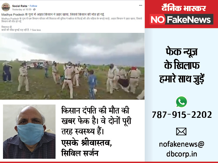 फेक vs फैक्ट :गुना में कीटनाशक पीने वाले किसान दंपति की मौत की खबर झूठी, गुना के सिविल सर्जन ने भास्कर को बताया- दोनों खतरे से बाहर हैं