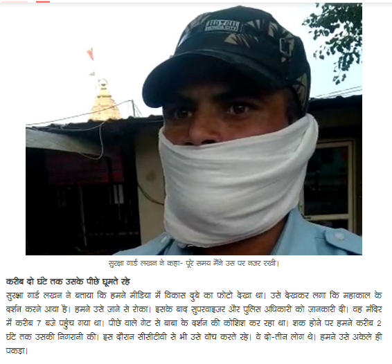 - पहला दावा- विकास दुबे को लखन यादव ने पहचाना। दैनिक भास्कर की वेबसाइट पर 9 जुलाई को प्रकाशित खबर के अनुसार विकास दुबे को पहचानने वाले का नाम लखन है। अन्य खबरों में गार्ड का पूरा नाम लखन यादव भी बताया गया है। इस तरह विकास दुबे को पहचानने वाले शख्स का नाम वायरल मैसेज में सही है।