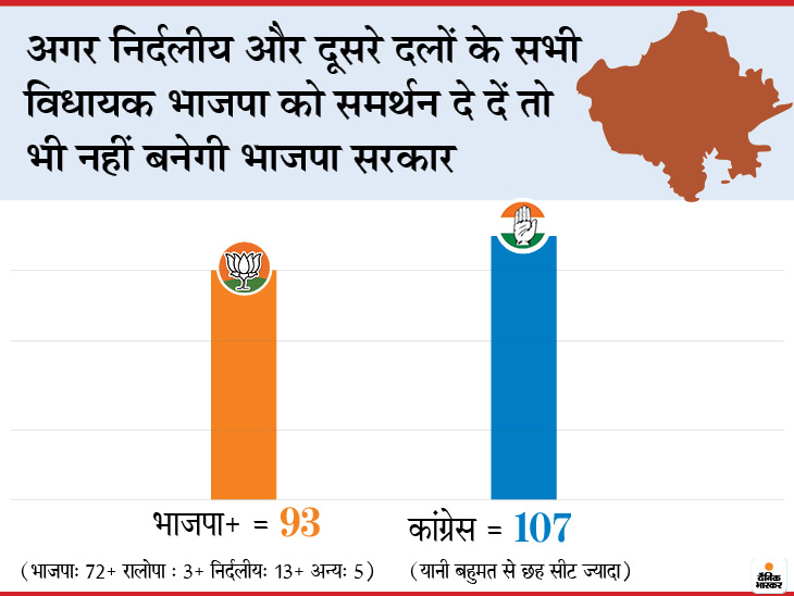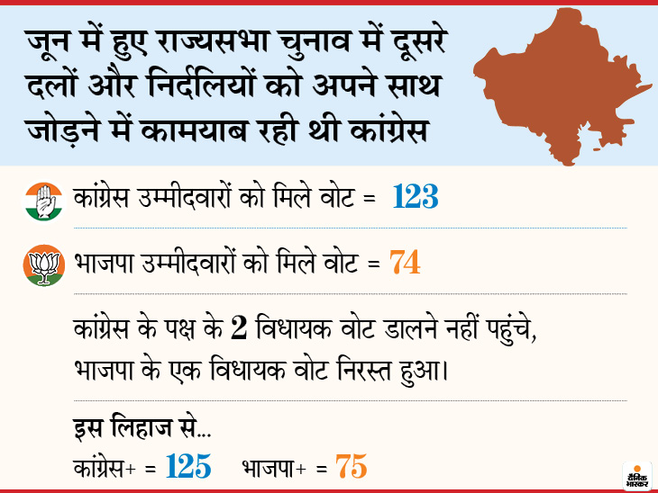 - फिलहाल कांग्रेस के 107 विधायक हैं, इनके अलावा गहलोत को 13 निर्दलीय और एक आरएलडी विधायक का समर्थन है