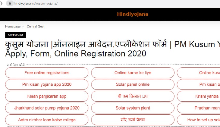 पीएम कुसुम योजना के नाम पर ऑनलाइन रजिस्ट्रेशन करा रही कुछ वेबसाइट